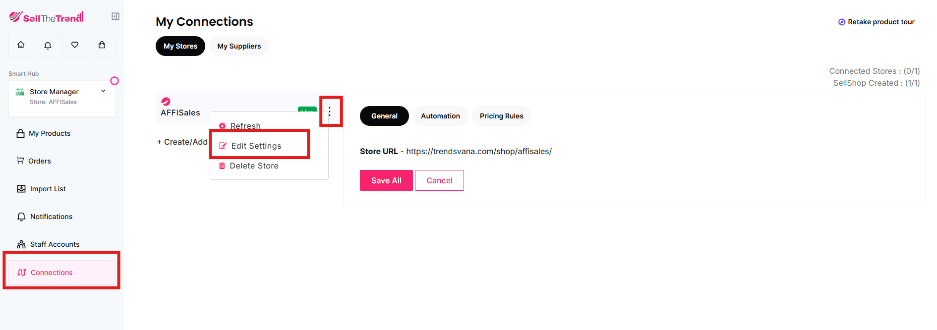 In order to switch to different currencies, Go to Store Manager > Connections> Edit Settings.