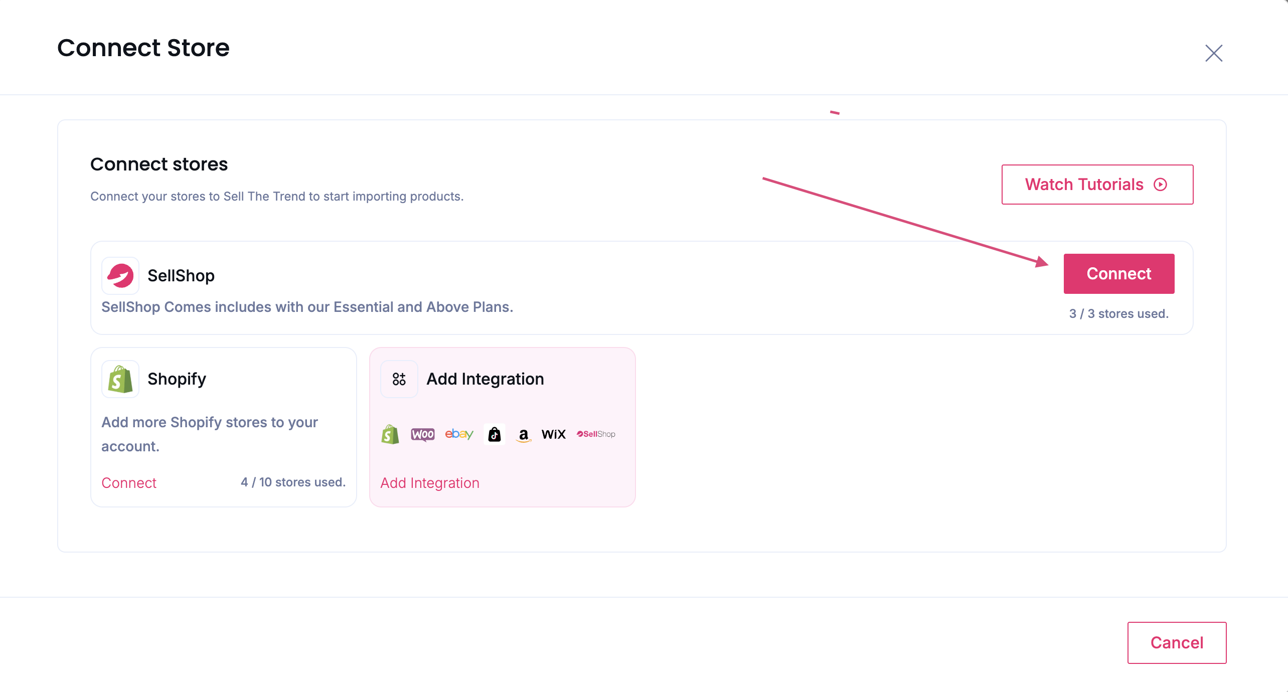 Then click on the Connect button to Create a Sell The Trend SellShop.