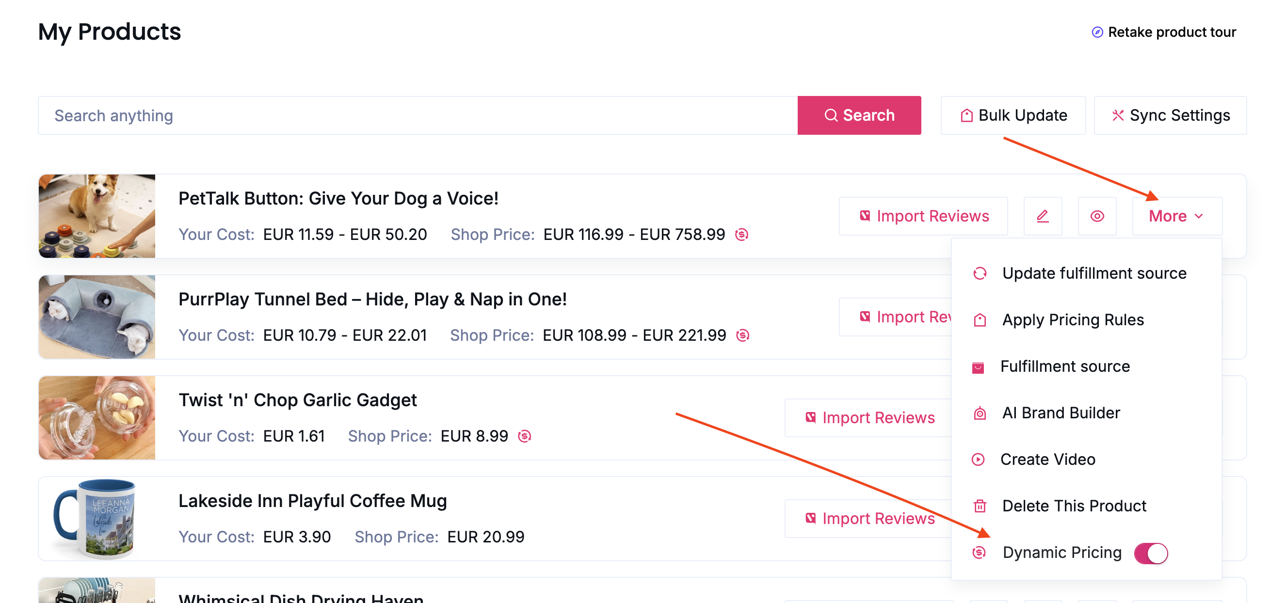 Enable Dynamic Pricing inside Sell The Trend to keep your store synced with your suppliers.
